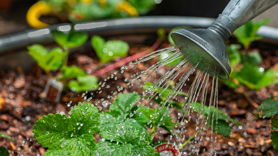Water in mornings/evenings, deadhead blooms, and protect delicate plants.